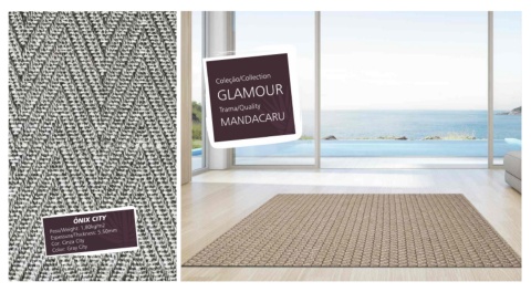 Coleção/Collection GLAMOUR Trama/Quality MANDACARU ÔNIX CITY Peso/Weight: 1,80kg/m2 Espessura/Thickness: 5,50mm Cor: Cinza City Color: Gray City