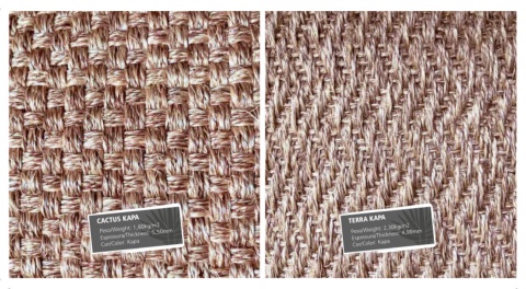 CACTUS KAPA TERRA KAPA Peso/Weight: 1,80kg/m2 Peso/Weight: 2,30kg/m2 Espessura/Thickness: 5,50mm Espessura/Thickness: 4,90mm Cor/Color: Kapa Cor/Color: Kapa